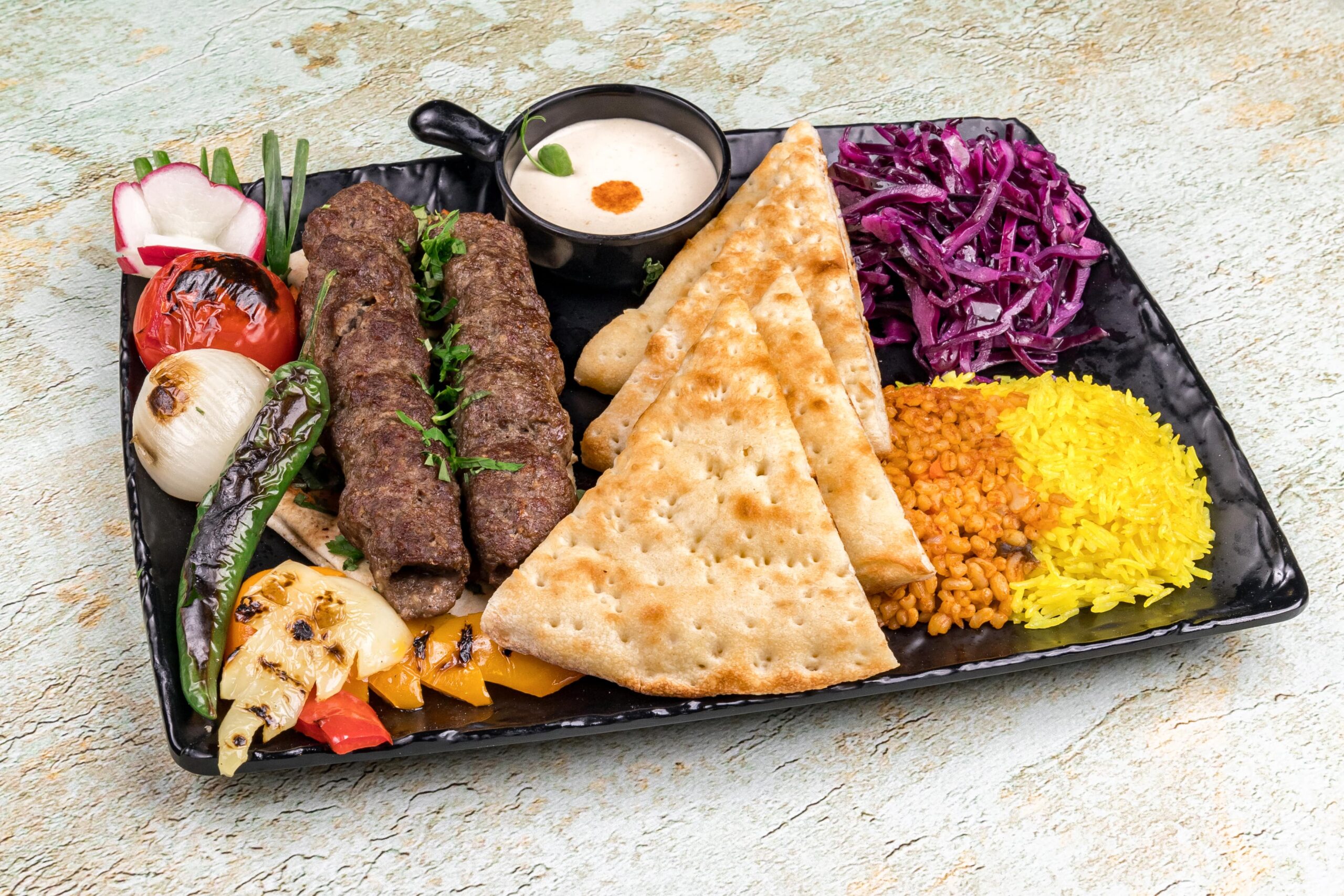 -pulpa de vita, pulpa de oaie, focaccia ciuperci, ardei, ceapa, rosii, varza, orez, bulgur